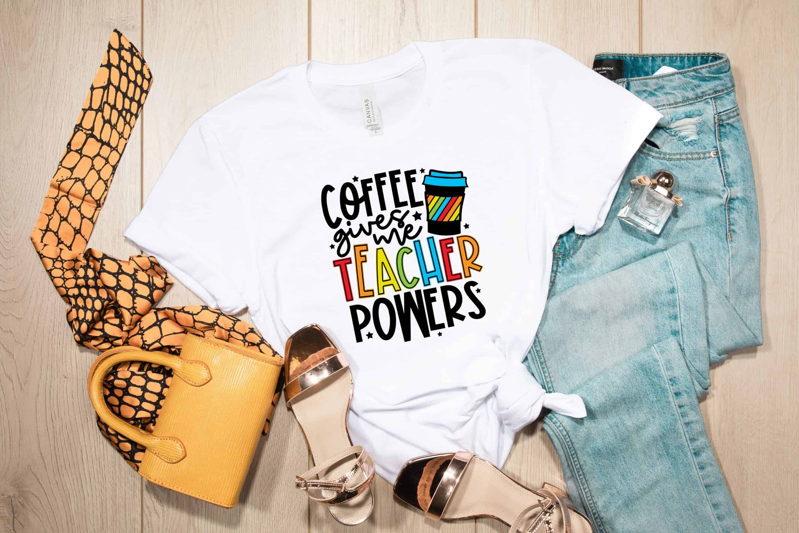 Coffee Gives Me Teacher Powers T-shirt, Teacher Shirt, Teacher Gift, Teacher Life, Teacher Appreciation Shirt, Cute Teacher Shirt